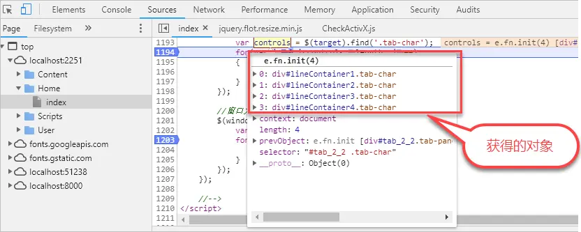 如果我们在处理jS的时候,无法确定是否正确运行了,我们可以跟踪函数,并可以跟踪获得对应的对象情况,如下我是在Chrome里面进行跟踪获得的结果,并可以跟踪进去每一步。