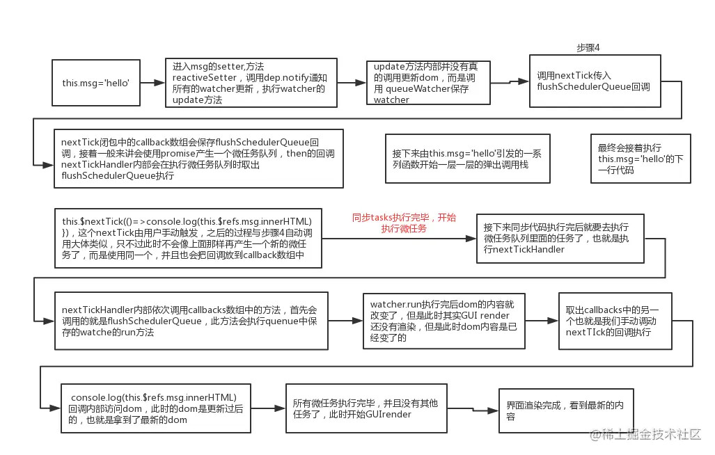 我个人是并不理解这个下次dom更新循环是指的什么?是跟event loop这个事件循环一个意思吗?本次dom更新循环是什么时候开始?什么时候结束?希望有人知道的解释下。我觉得执行回调的时机是在下个tick之前执行的,