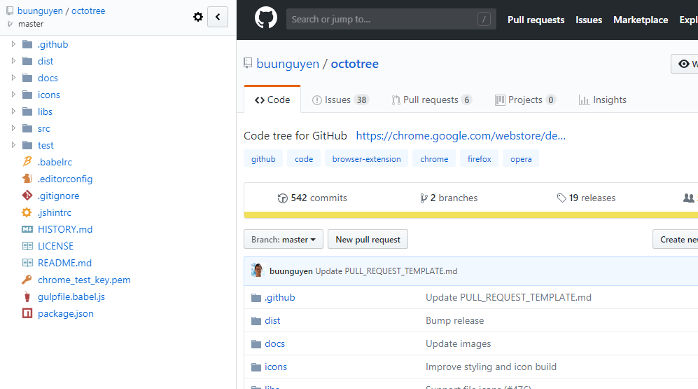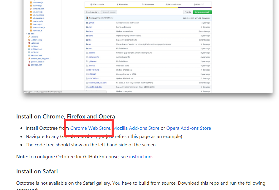 前端实用工具汇总 暖暖的风儿2 2018-07-16 237 阅读1分钟 octotree 说明:让git的代码以树状呈现,如下图,在看源码的时候,超级赞: git地址 -> git地址 Chrome 浏览器,直接点击红框框,安装即可!