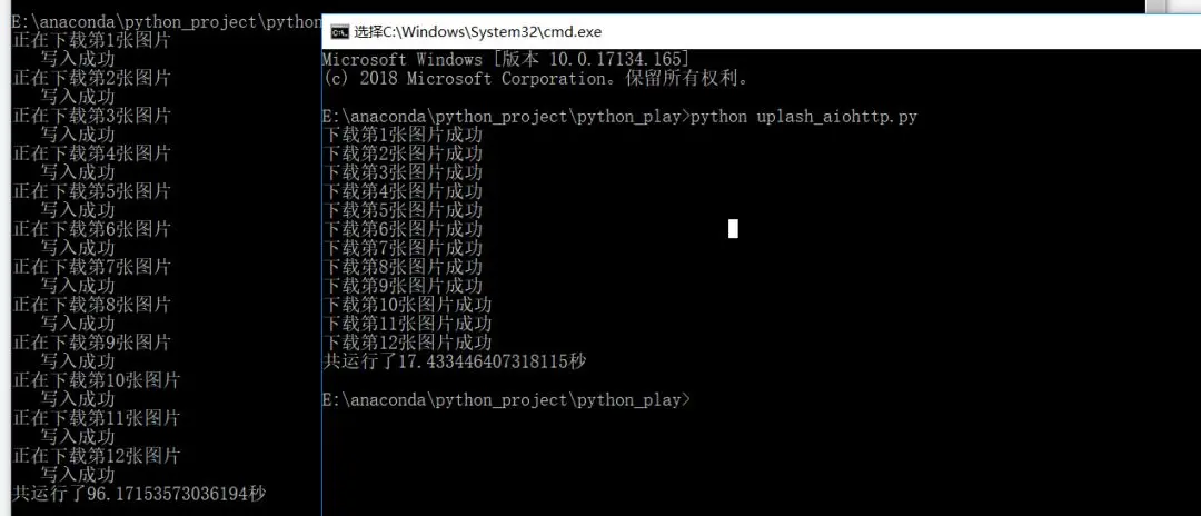 (右边是使用异步的,左边是没有使用异步的,由于用于测试,所以选择下载12张图片即可)