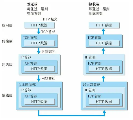 TCP/IP协议族按层次分别为以下4层:应用层、传输层、网络层、数据链路层
