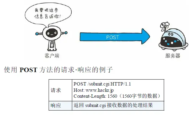 - POST方法。传输内容实体。虽然GET方法也可以用来传输内容实体,但是我们一般都不怎么做。POST的主要目的并不是获取响应的主体内容。