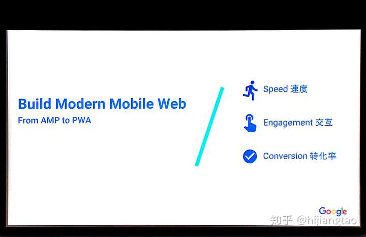 这场分享其实是为商务准备的,所以 Google 还说了他们几点在新技术上所采取的倾向措施,以此希望推广这两项技术有更广的应用落地。倾向一、Google 爬虫会优先爬取移动端 site;倾向二、Google 排名会将移动端 site 的访问速度作为影响因素之一纳入考虑范畴。详情可见博文 webmasters.googleblog.com/2018/03/rol…
