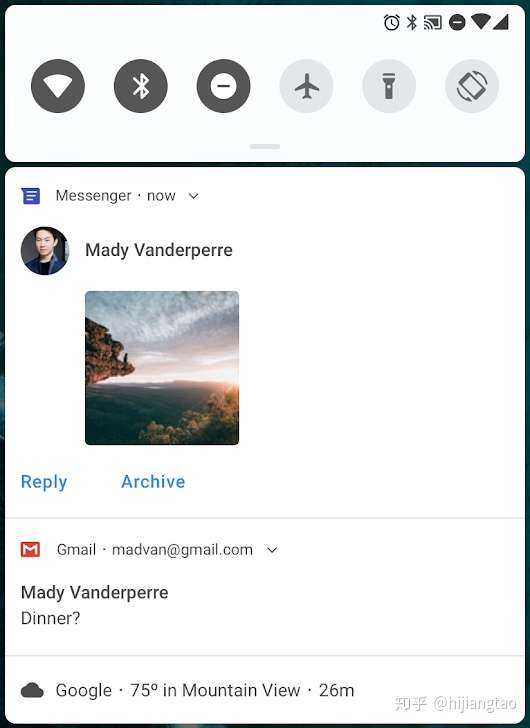 同时在 Android P 中,通知面板里的图片展示有了更好的布局,可见下图。