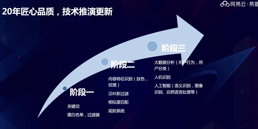 网易内容安全服务的优势不仅在于20年来积累的数十亿样本库和丰富的运营经验,还在于采用了最新的大数据和人工智能技术,网易在行业内首次推出第三代人工智能技术,广泛采用了语义识别、自然语言处理、图像识别、人机识别等技术,对有害内容的智能识别率超过99.6%。