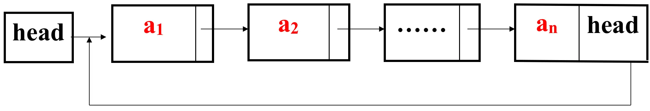- [x] 注意: 这里说第一个结点而不是说首元结点是因为,如果循环单链表是带头结点的,则最后一个结点的指针域要指向头结点,如果循环单链表的不带头节点,则最后一个指针域要指向首元结点