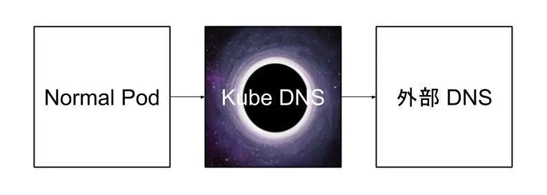 在排查问题前,先思考一下Kubernetes集群中的DNS解析过程,在安装好kube-dns的集群中,普通Pod的dnsPolicy属性是默认值ClusterFirst,也就是会指向集群内部的DNS服务器,kube-dns负责解析集群内部的域名,kube-dns Pod的dnsPolicy值是Default,意思是从所在Node继承DNS服务器,对于无法解析的外部域名,kube-dns会继续向集群外部的dns进行查询,过程如图。