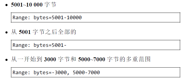 执行范围请求的时候,会用到首部字段Range来指定资源的byte范围。