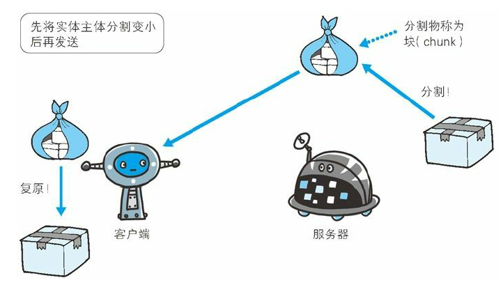 分块传输编码会将实体主体分成多个部分(块)。使用分块传输编码的实体主体会由接收到客户端负责解码,恢复到编码前的实体主体。