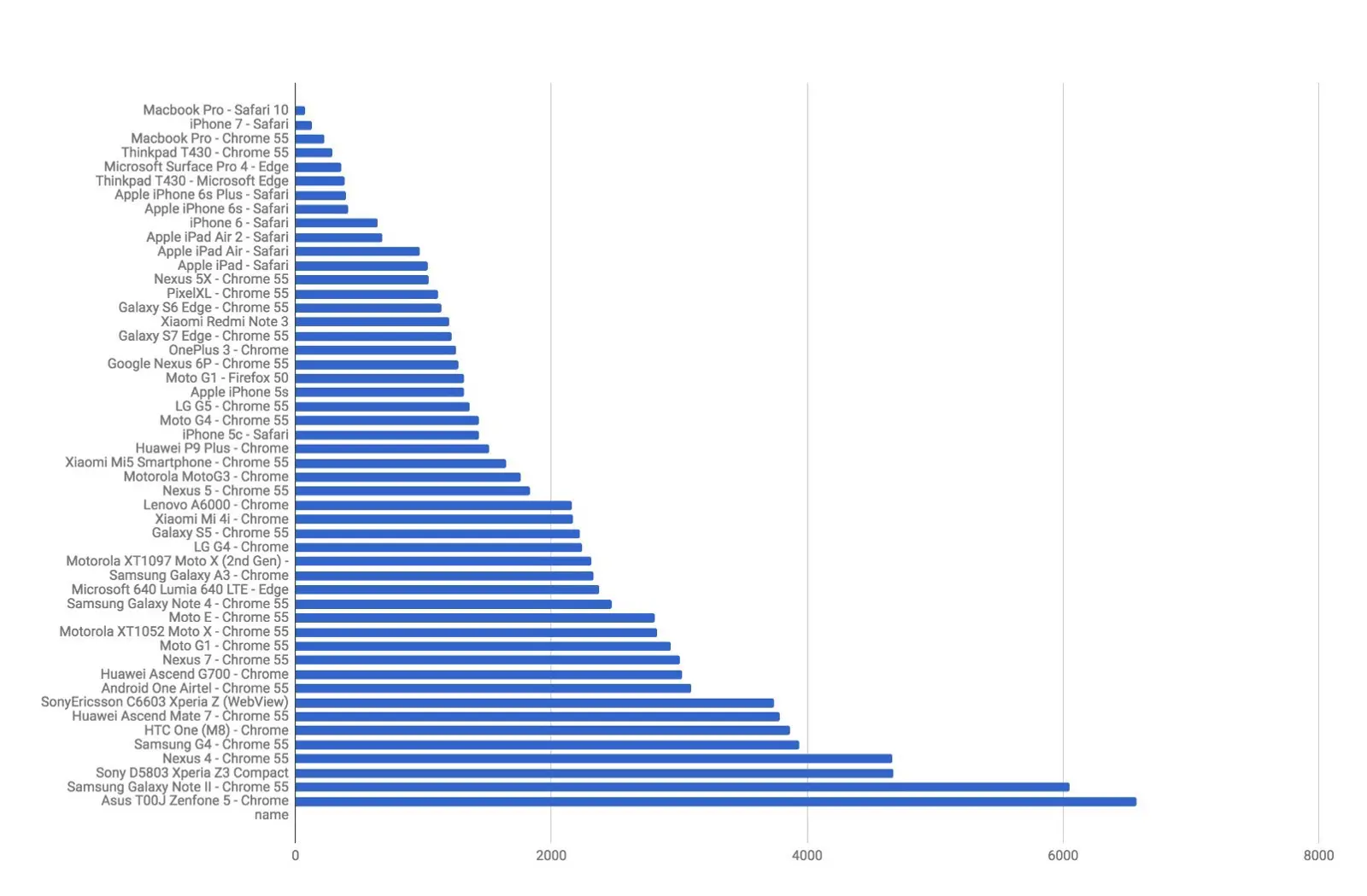 以上图表展示了不同移动和桌面浏览器解析 1MB JavaScript 代码所消耗的时间。