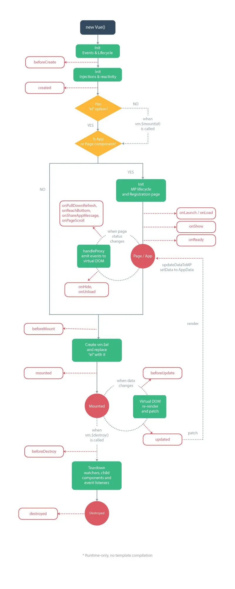 | 普通页 | 普通页 | onHide | onLoad onShow onReady beforeMount + beforeUpdate mounted |