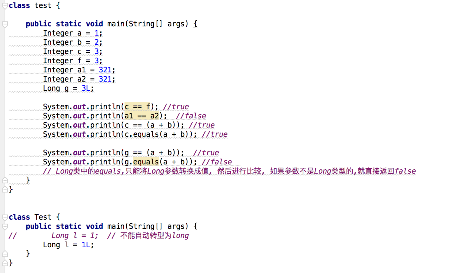 基本类型的包装类型的equals()方法,不处理数据转型