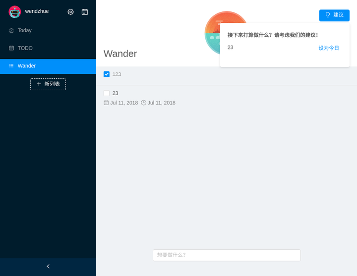 我们现在来验证一下我们上一篇文章写的建议组件能不能正常工作。选择一个待办事项,并设置它的截止日期为两天以内的某个时间,然后点击“建议”,它的确建议我们做这件事情!