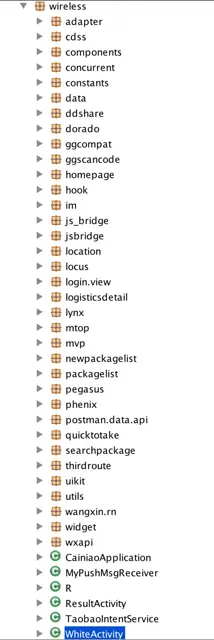 这次分析从AndroidManifest.xml文件开始, 菜鸟App的包名:com.cainiao.wireless。