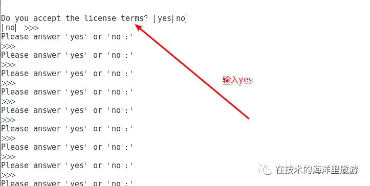 一路回车,看到输入都输入yes