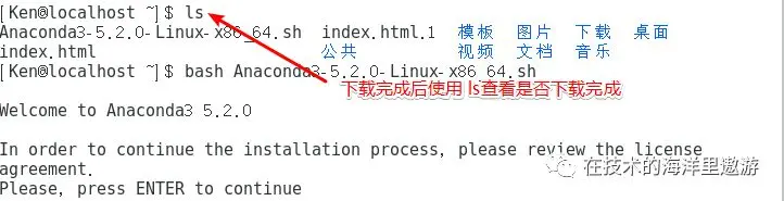下载完成之后我们可以用命令 ls 查看