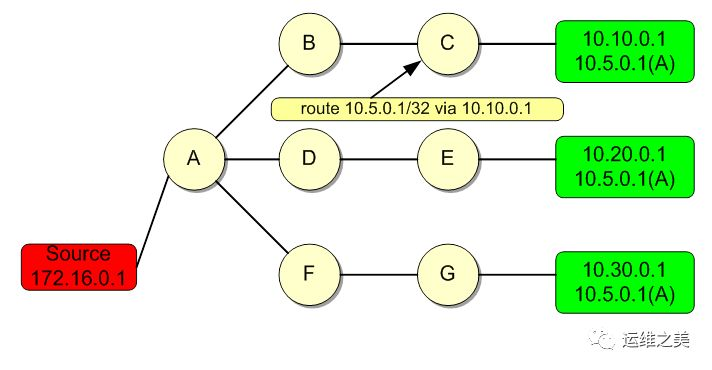 例如:在 IP 网络上通过一个 Anycast 地址标识一组提供特定服务的主机,同时服务访问方并不关心提供服务的具体是哪一台主机(比如:DNS 或者镜像服务),访问该地址的报文可以被 IP 网络路由到这一组目标中的任何一台主机上。
