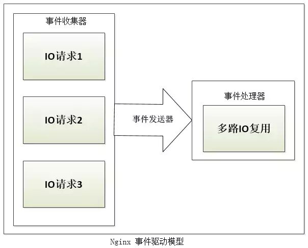 如上图所示, Nginx 的 事件驱动模型 由 事件收集器、事件发送器 和 事件处理器 三部分基本单元组成。