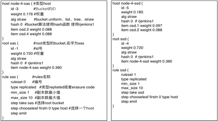 a. 从CRUSH Map中的哪个节点开始查找b. 使用那个节点作为故障隔离域c. 定位副本的搜索模式(广度优先 or 深度优先)