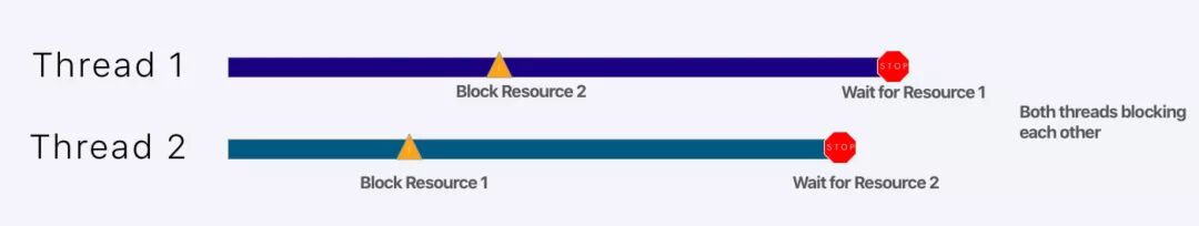 死锁是由环状等待引起的。一个线程在等待第二个线程持有的资源,第二个线程也在等待第一个线程持有的资源。