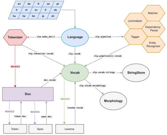 它可以从 spaCy 的任何地方和任意对象进行访问(如下图所示),比如 npl.vocab.strings、doc.vocab.strings 或者 span.doc.vocab.string。