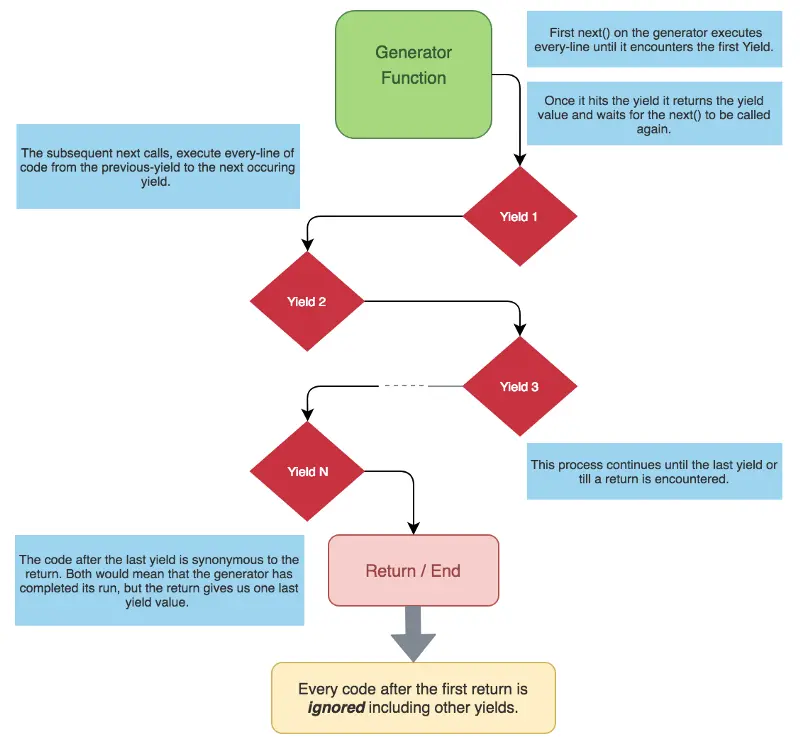 return 后的一切代码都会被忽略,包括 yield 表达式。