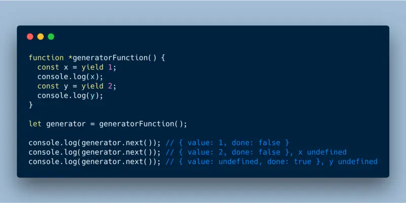 - Value —— yield 关键字右侧的值,可以是对函数的调用、对象等几乎任何东西。对于空的 yield,返回的是 undefined。
