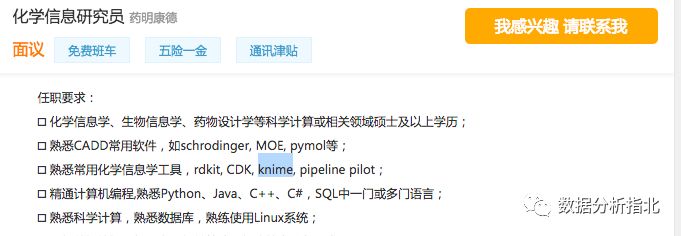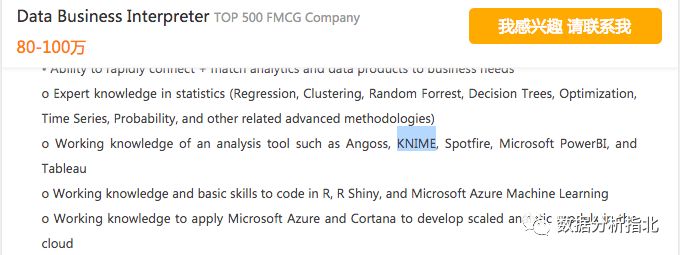 再或者某某500强公司招聘80–100万年薪的 Data Business Interpreter 时, 也要求对 KNIME 熟悉: