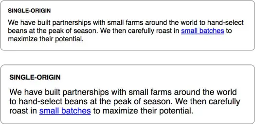 类似地,如果你的老板或者客户觉得现在网站的字号太小或者太大,你随时可以做到通过修改一行代码影响到全局的元素,这项改变会影响到页面上的其他元素,不费吹灰之力。