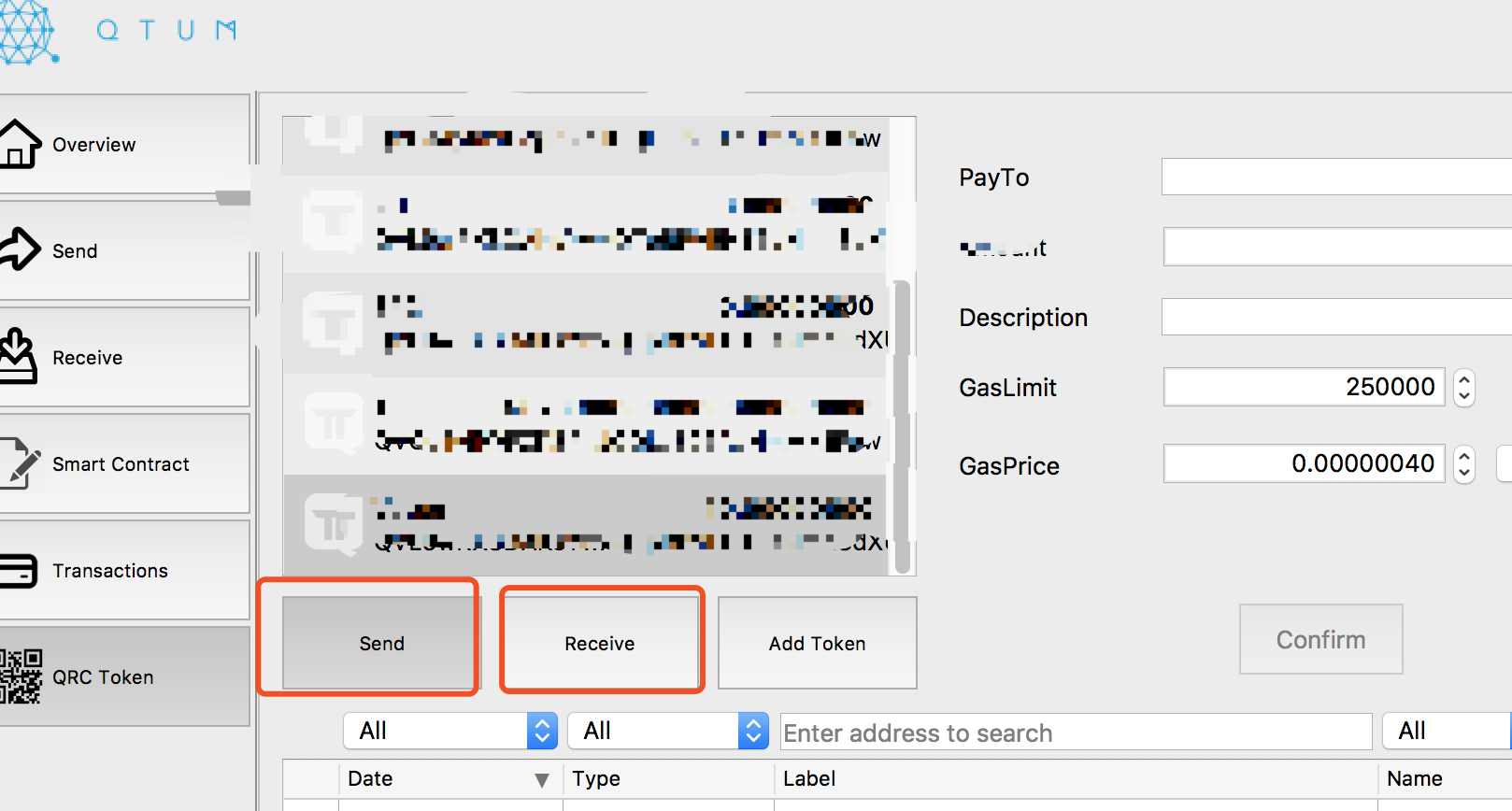 - 发送代币需要一定的QTUM作为手续费,请确保持有代币的那个QTUM地址下有足够的余额。