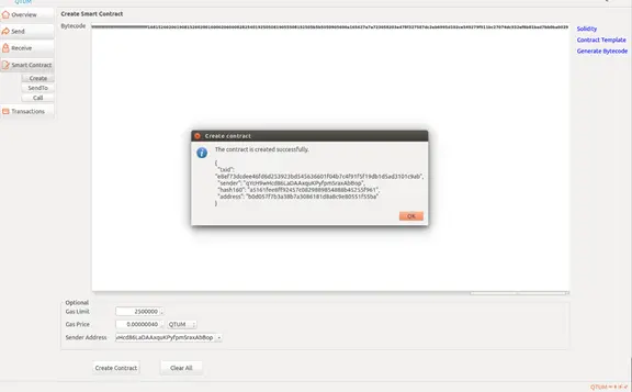 这个输出是一个交易,所有合约相关的功能都是通过发送交易触发的,该交易在Qtum量子链上部署了地址为2d4b6564a012ae1383854ac48574c2248660d897的智能合约。智能合约的需要等待区块对交易确认后,才在Qtum链上部署完成。