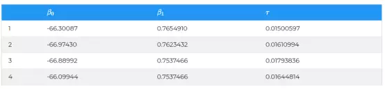 JAGS工具是基于马尔可夫链蒙特卡罗(MCMC)的仿真过程,能产生参数空间 θ =(β0;β1;τ)的许多迭代结果。 在该参数空间中为每个参数生成的样本分布将接近该参数的总体分布。