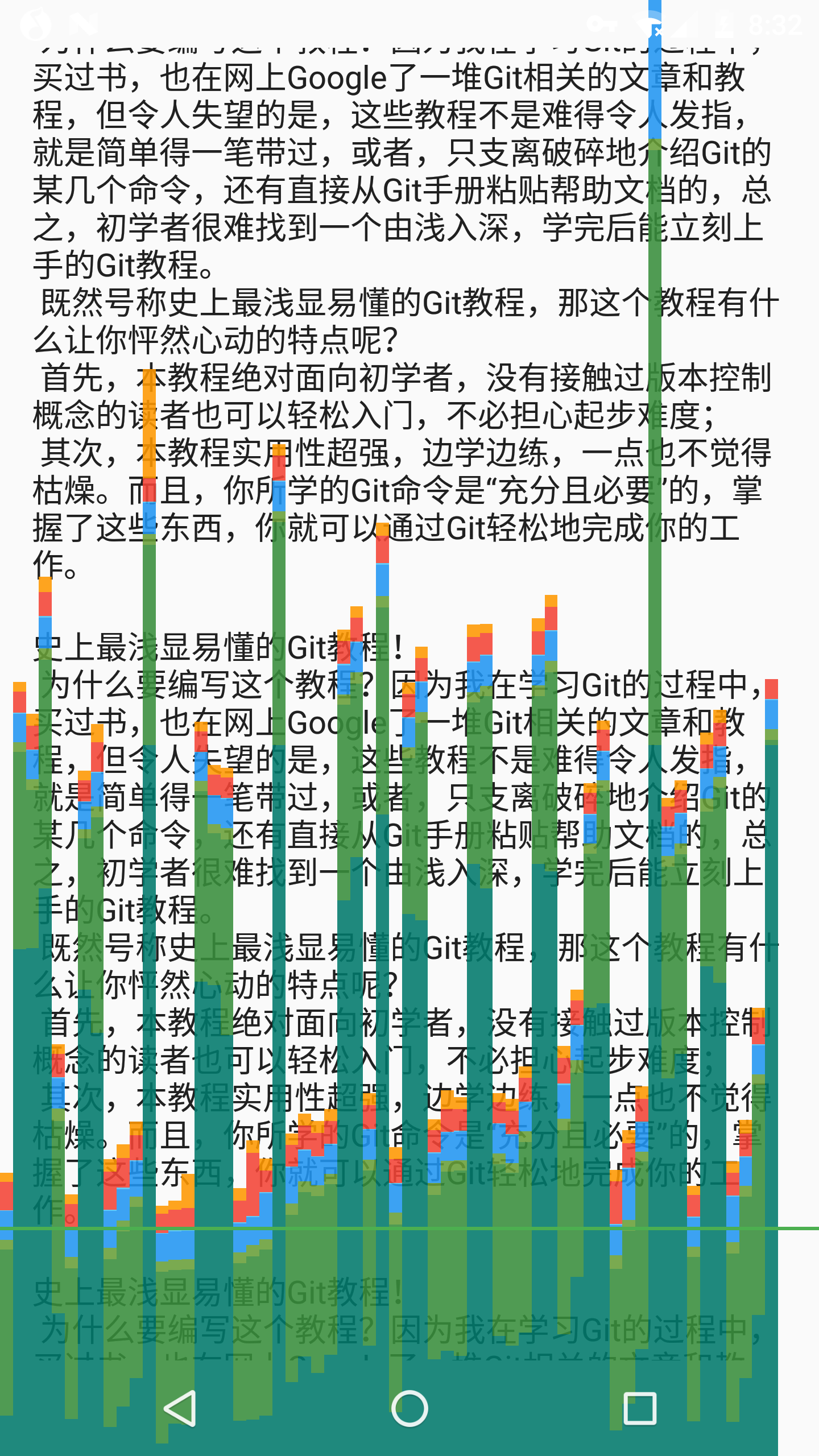 下图显示了一个简单的RecyclerView,它显示了大块文本。 在Pixel2(运行Android P,1GHz的CPU)上,测量80个字(~520个字符)需要TextView 15.6ms。然而每个帧的最大期限是16.67ms,因此如果UI线程必须测量高复杂度TextView,它将超过最大期限。