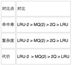 LRU-K具有LRU的优点,同时能够避免LRU的缺点,实际应用中LRU-2是综合各种因素后最优的选择,LRU-3或者更大的K值命中率会高,但适应性差,需要大量的数据访问才能将历史访问记录清除掉。
