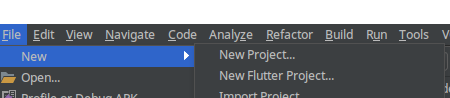 第八步,重启以后打开AS file new 会看到 下面的那个 new flutter project。