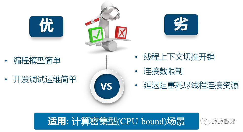总体上,同步阻塞模式比较适用于计算密集型(CPU bound)应用场景。对于IO密集型场景(IO bound),同步阻塞模式会白白消耗很多线程资源,它们都在等待IO的阻塞状态,没有做实质性工作。