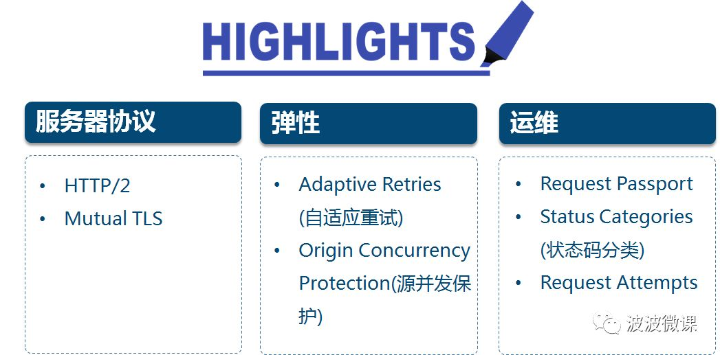 上图是Zuul2的一些功能亮点,我个人认为除了对HTTP/2的支持算是一个亮点,其它都是在安全、弹性和运维层面的一些优化,不能算新功能。其中像Request Passport,Status Categories,Request Attempts这些所谓的新功能,其实是为了减轻异步带来的复杂性,方便开发人员调试异步请求而专门开发的。