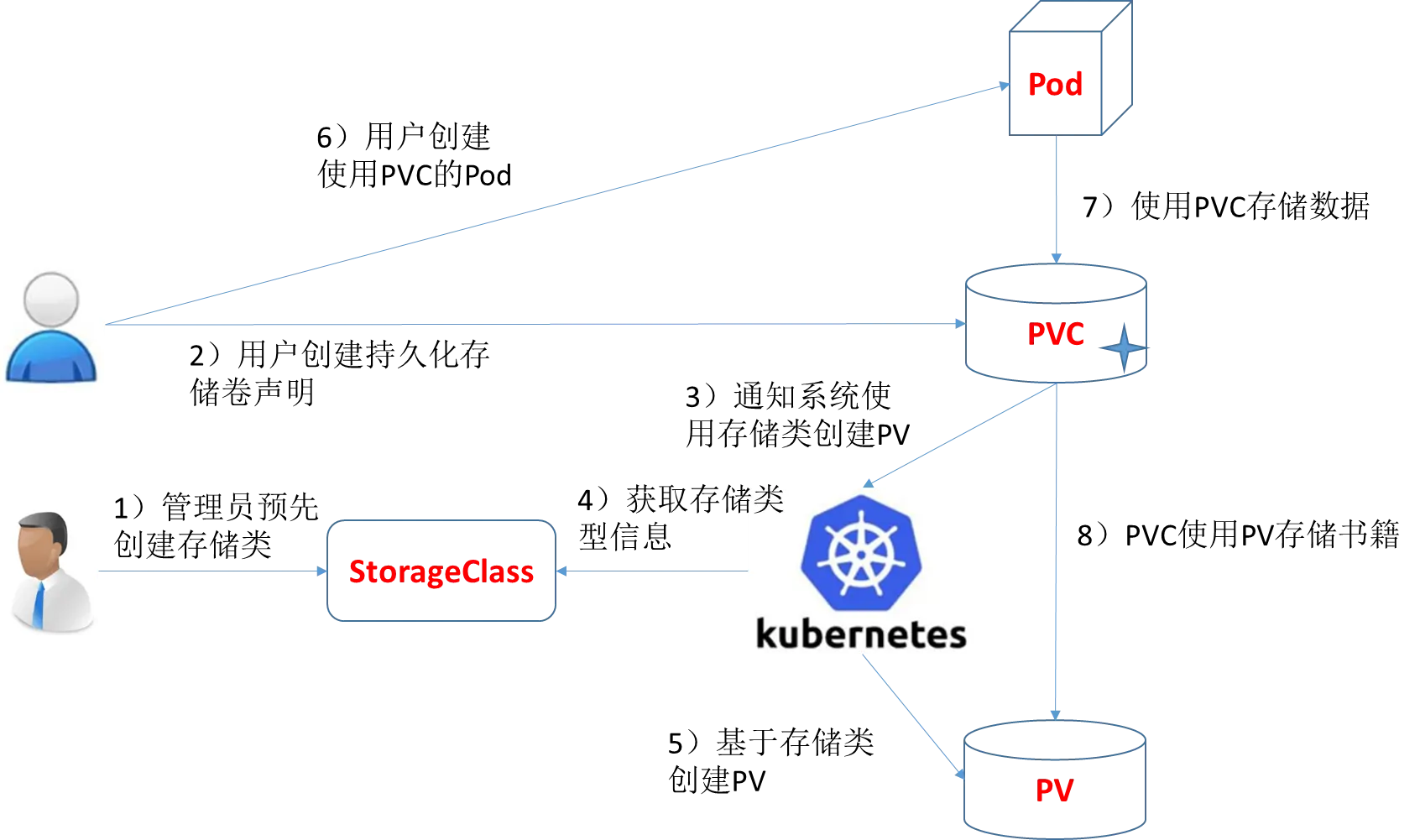 6)用户创建一个使用PVC的Pod;