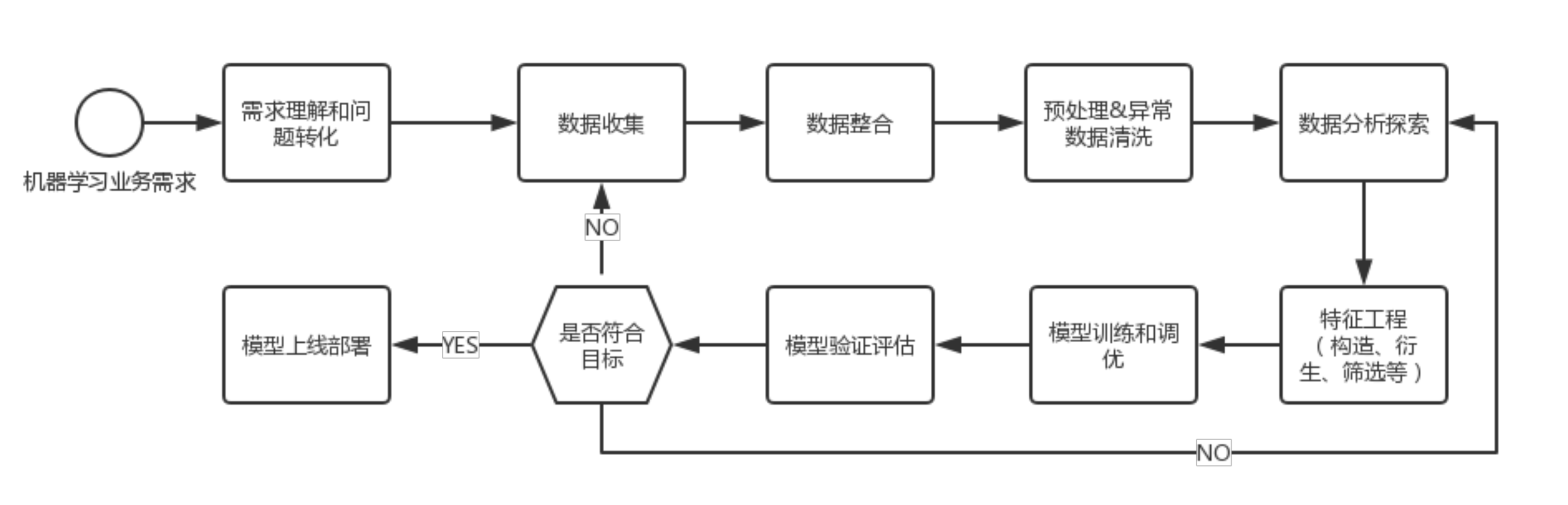 标准的机器学习工作流:针对业务上产生的具体问题,我们把它转化成数据问题,或者评估它能否用数据来解决。将数据导入并过滤后,我们需要将数据与业务问题和目标进行相关性分析,并根据具体情况对数据做二次处理。