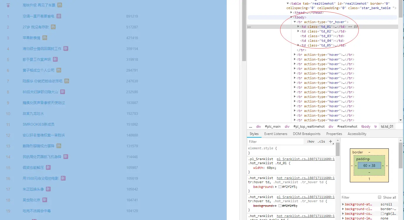 热搜html 我们可以看到,右边那<tbody>里面正是我们需要抓取的数据,话不多说,上码吧!