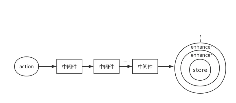 有时候我们需要多个 middleware 组合在一起形成 middleware 链来增强store.dispatch,在创建 store 时候,我们需要将 middleware 链整合到 store 中,官方提供applyMiddleware(...middleware)将 middleware 链在一起。