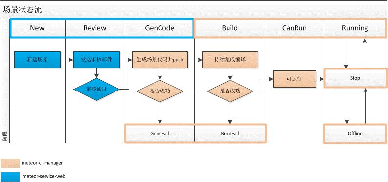 1、场景被创建,不同的场景由不同的节点模块组成,场景创建时选取相应的节点模块,此时场景的数据状态为NEW;