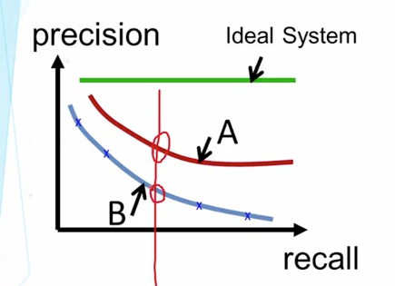 对于理想的系统而言,它的精度不会受召回率的影响。通常相同的召回率,精度越高越好,但是如果A/B两条曲线存在交点,这时候就要根据系统自己的使用场景,是关心高召回率还是高精度来选择