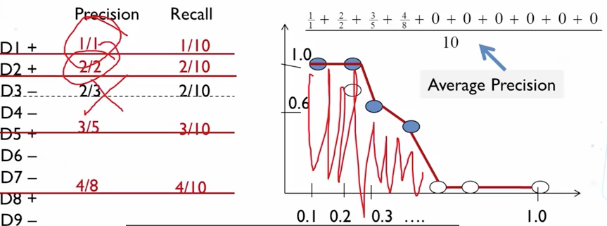 当尝试去找更多的文档的时候,那也会查找更多的文件,精度随之降低 从实用性来讲,用户使用一般只看返回结果的第一屏【一般是10】,那么可以在这个范围内来衡量【前10】的准确率