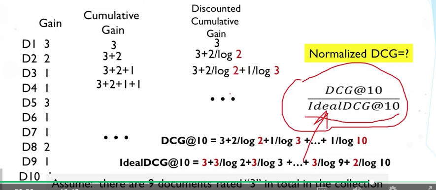 但是由于他会随着高相关的一直递增,而对于某些结果而言,高相关的结果本来就少,就会失去公正性,所以实行标准化,称作NDCG