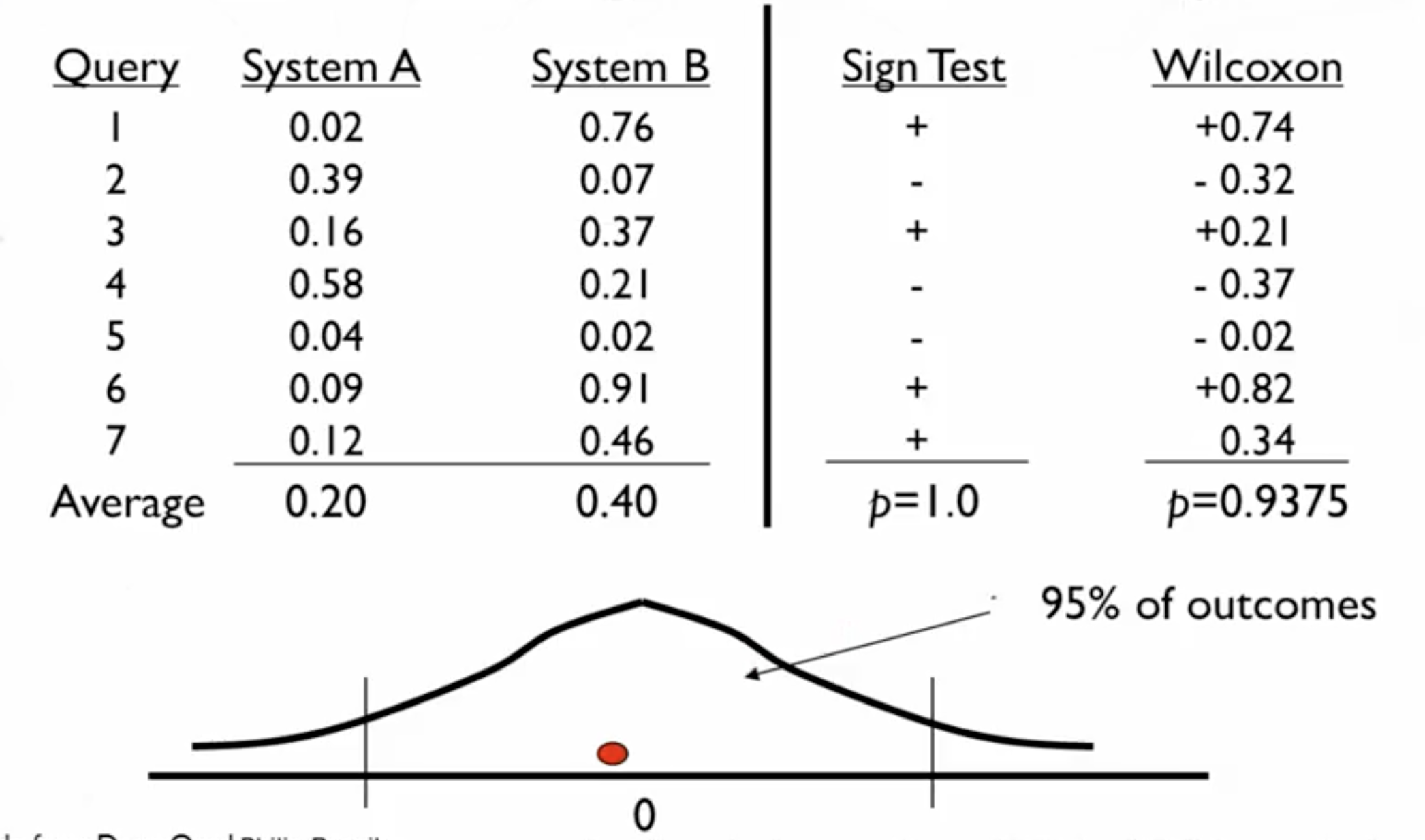 对于多次实验的结果做平均值,如果表明实验A的平均值比B的平均值低,真的表明A比B要好么?而不是因为你选的特定的查询呢?