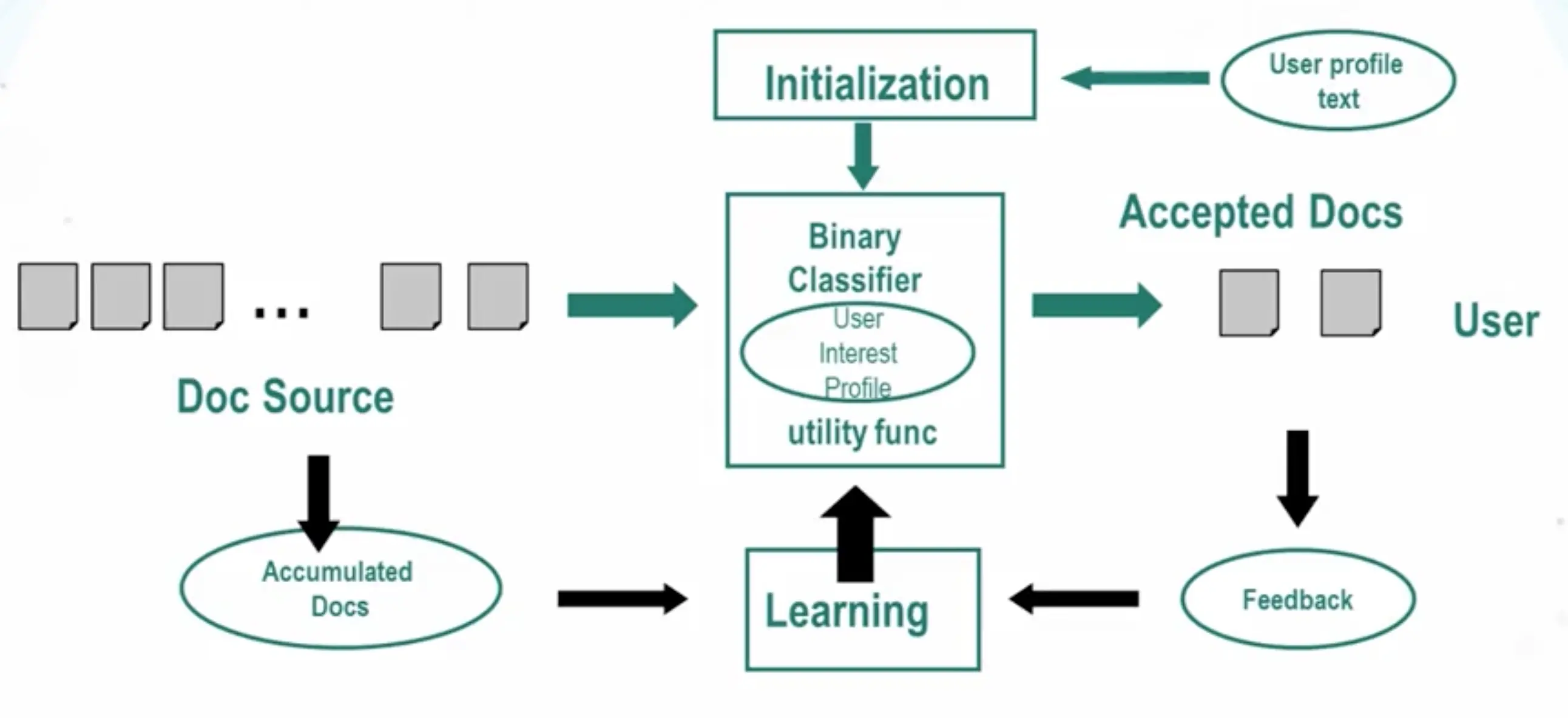 推荐系统即把恰当的内容推送给用户,类似于在一系列文档中过滤出用户想要的。一般有两种方式:
