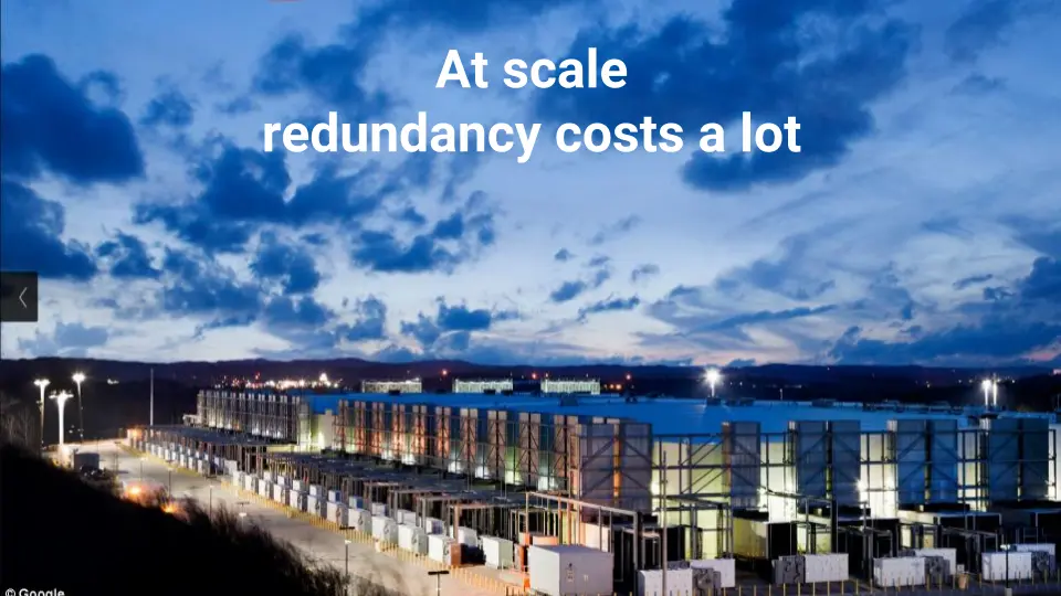 Redundancy wasn't going to scale, redundancy costs a lot. It costs new server farms.