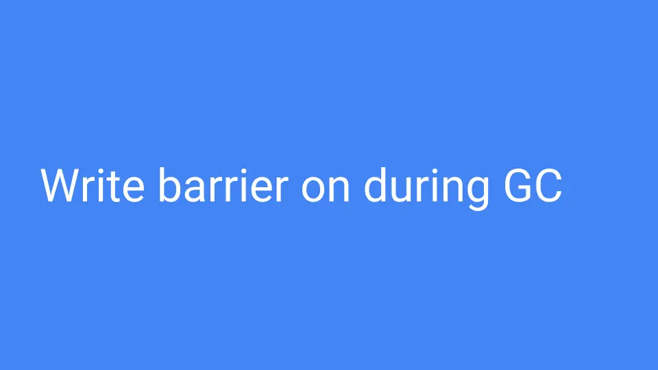 So what about write barriers? The write barrier is on only during the GC. At other times the compiled code loads a global variable and looks at it. Since the GC was typically off the hardware correctly speculates to branch around the write barrier. When we are inside the GC that variable is different, and the write barrier is responsible for ensuring that no reachable objects get lost during the tri-color operations.