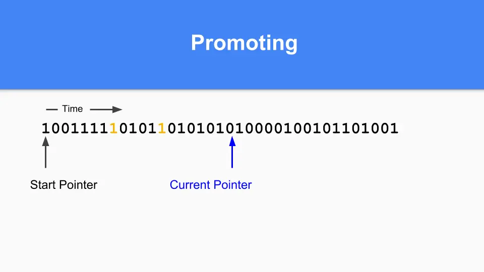 So how do you do promoting. If you find something marked with a 1 pointing to something marked with a 0 then you promote the referent simply by setting that zero to a one.